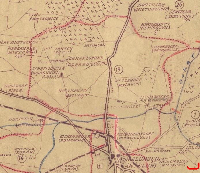 Mapa gminy Wydrzyn w latach 1939-1945.
