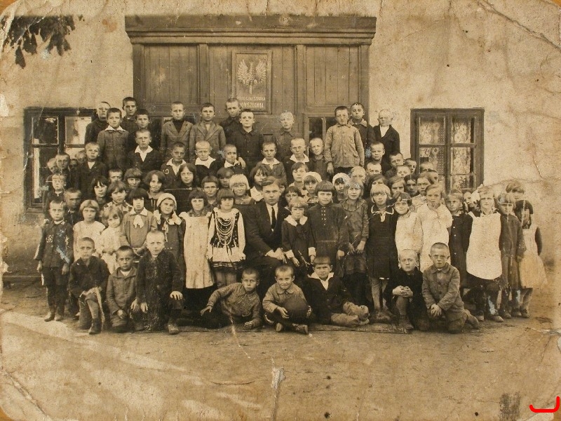 Uczniowie Publicznej Szkoły Powszechnej w Niedzielsku wraz z nauczycielem Ignacym Klimaszewskim, ok. 1928r