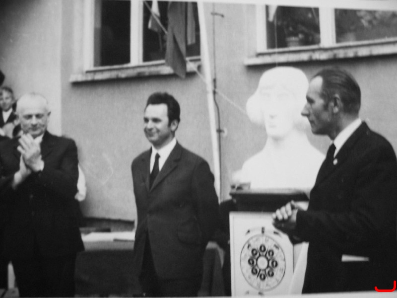 Julian Bartodziej(naczelnik) i Jan Czapnik (od prawej), uroczyste nadanie Szkole Podstawowej w Czarnożyłach imienia Mikołaja Kopernika.