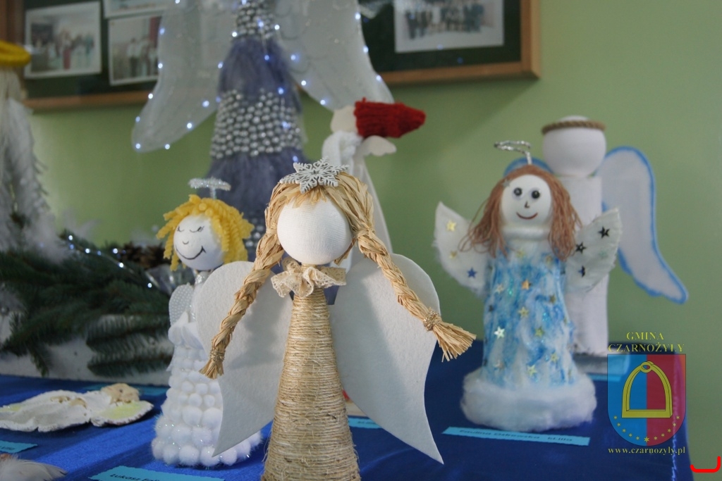 Wystawa świątecznych choinek i aniołków w Czarnożyłach