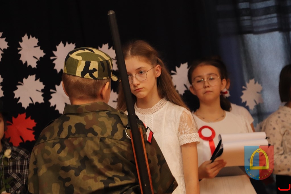 Patriotyczna inscenizacja uczniów szkoły w Łagiewnikach 2021 r.